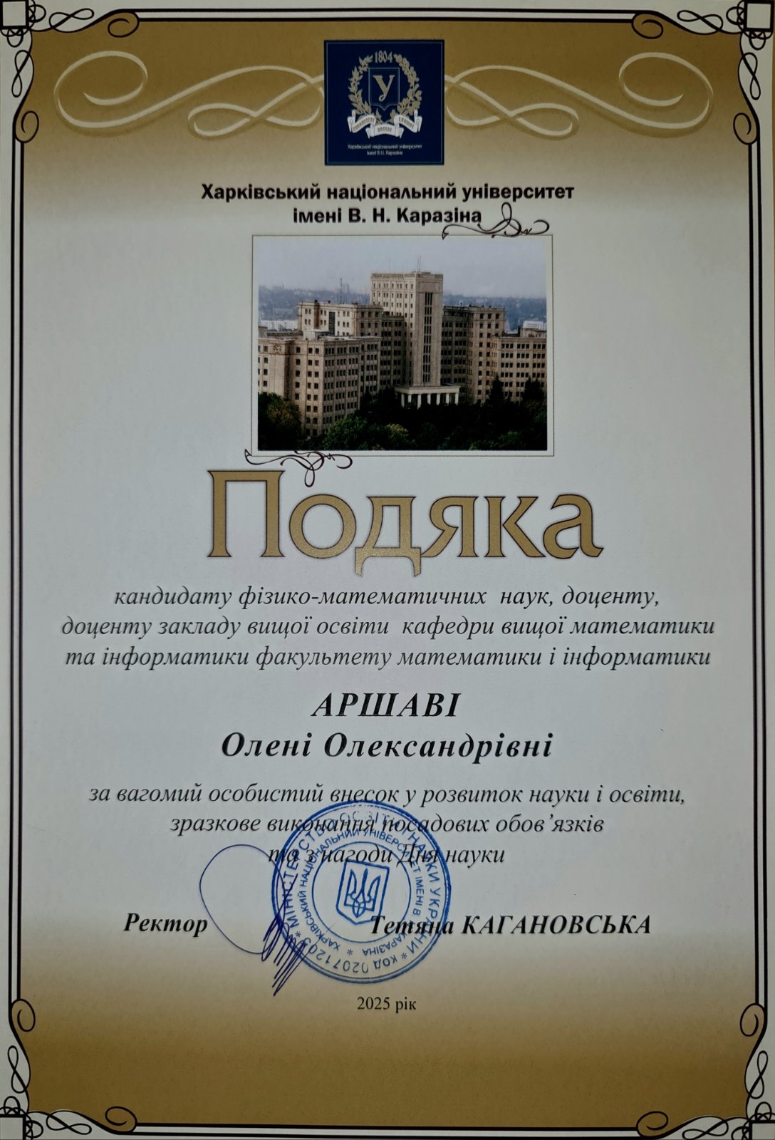 - Роль математичної освіти в формуванні професійних знань та компетентностей лінгвістів / О.О. Аршава // Вісник науки та освіти, 6(36), 2025. С. 840-853.