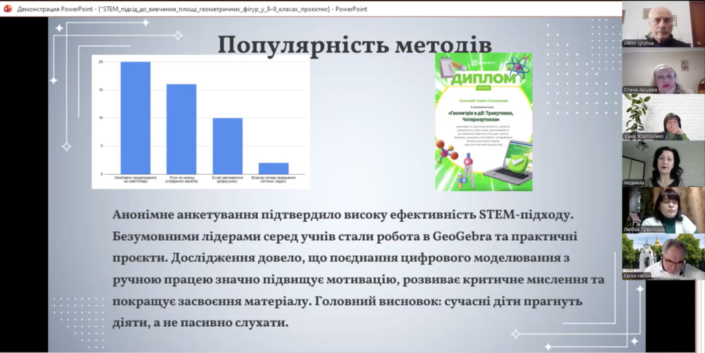 • ТРЕЗІНСЬКА Любов Володимирівна — STEM-підхід до вивчення площі геометричних фігур у 8-9 класах: проєктно-дослідницький підхід та практичне застосування;